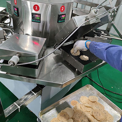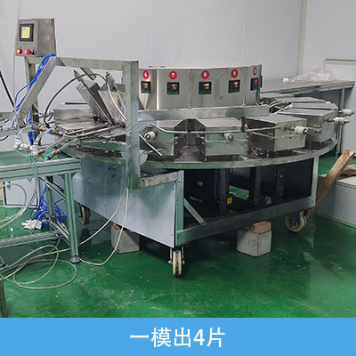 可以一模出两片,一模出4片等均可定制,产量根据做饼的尺寸厚度重量有所变化。